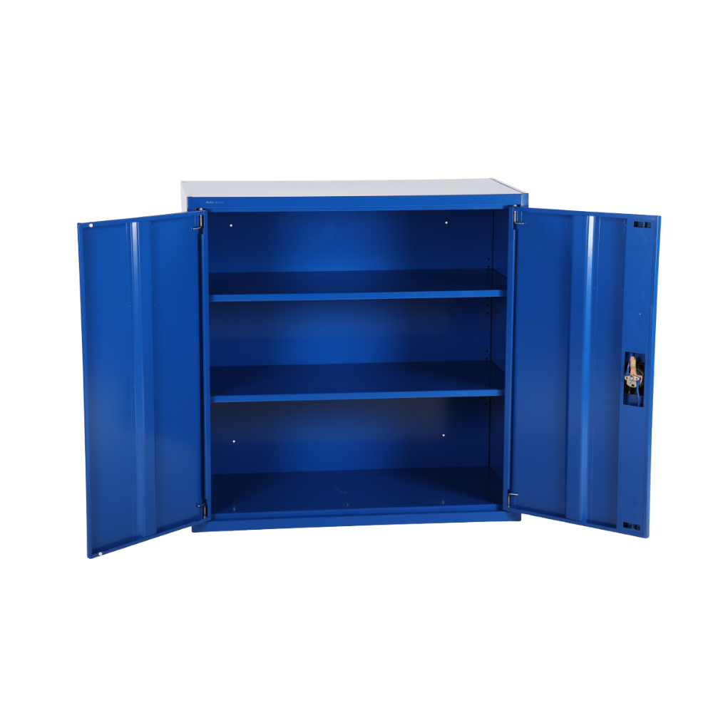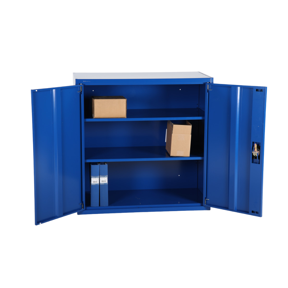 Disponible en bleu RAL 5010 ou gris RAL 7035, cette armoire allie fonctionnalité et esthétique sobre, s’intégrant harmonieusement dans tout type d’environnement professionnel. Son design compact permet de placer l’armoire dans des espaces restreints sans compromettre la capacité de rangement. Que ce soit pour un bureau, un service administratif, un atelier ou un entrepôt, elle constitue une solution pratique et fiable pour organiser vos équipements et documents.