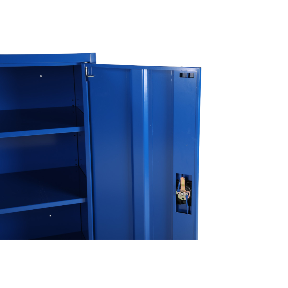 La sécurité de vos effets est assurée grâce à un verrou à trois points de fermeture, garantissant que les portes restent solidement fermées et protégées contre toute ouverture accidentelle ou non autorisée. L’armoire est également équipée de deux étagères réglables, permettant d’adapter l’espace intérieur à vos besoins spécifiques. Que vous ayez besoin de stocker des dossiers suspendus, des boîtes ou des petits équipements, ces étagères offrent une grande flexibilité pour un rangement optimisé.
