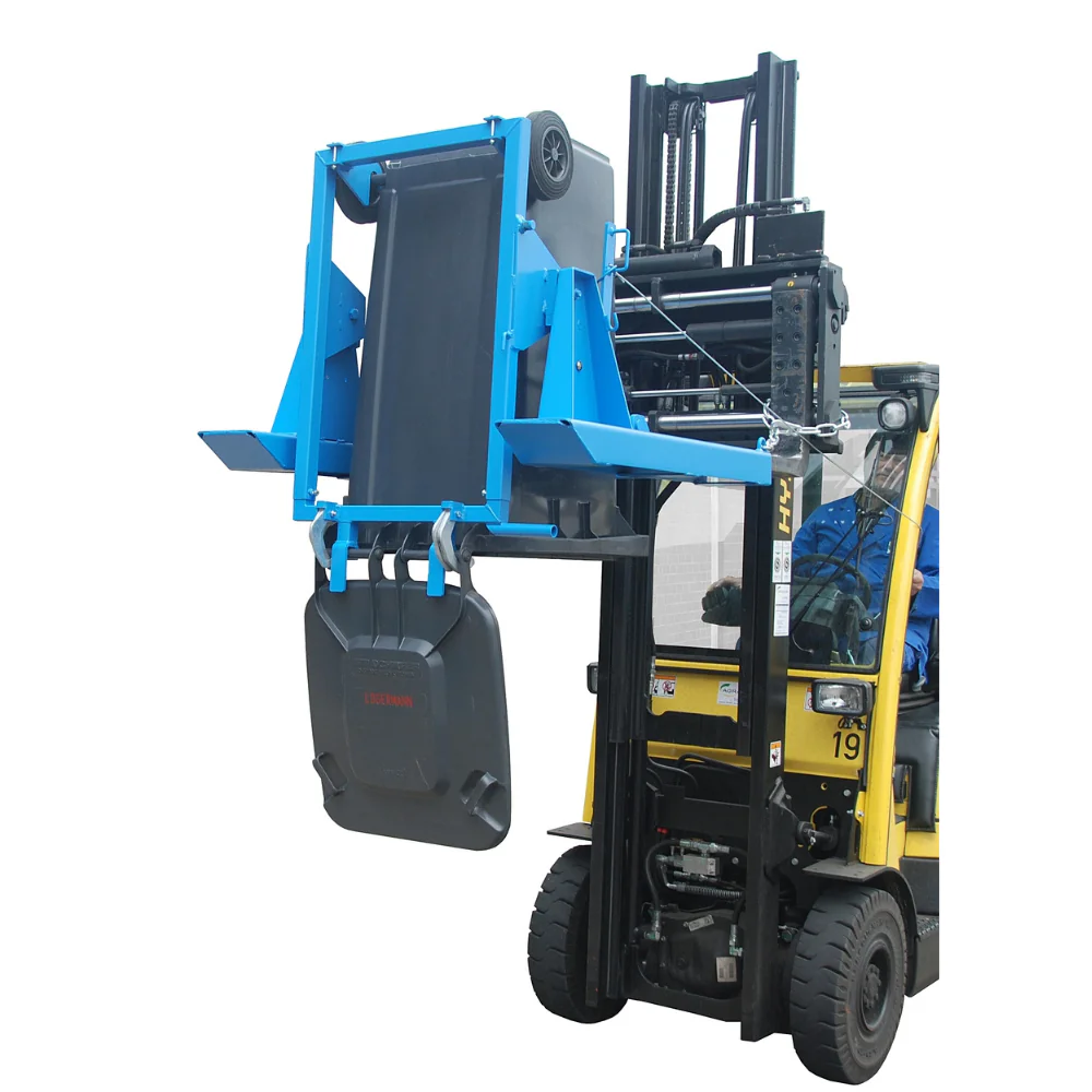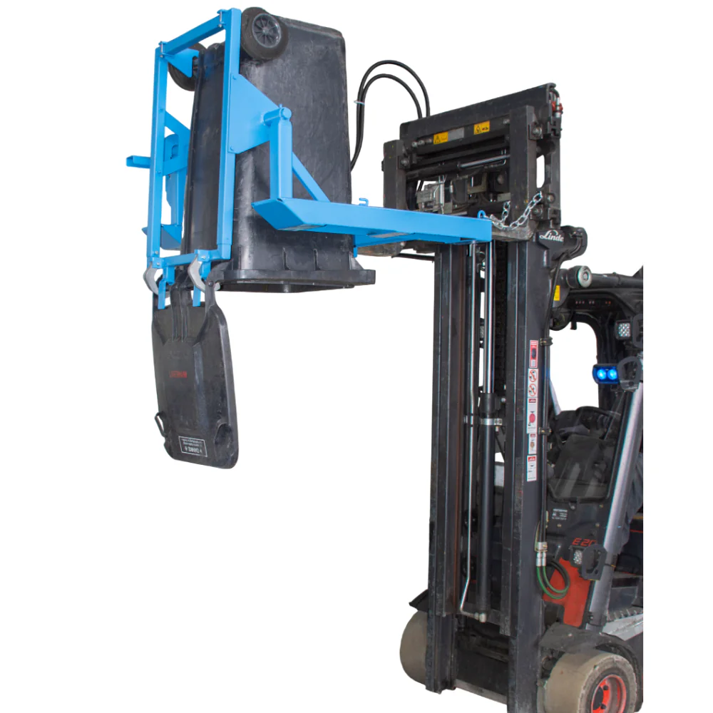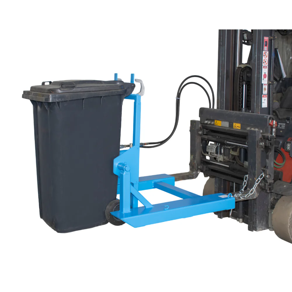 Conçu pour une utilisation avec chariots élévateurs et gerbeurs, il permet de manipuler et vider les poubelles standard en toute sécurité, tout en améliorant la productivité des opérateurs.